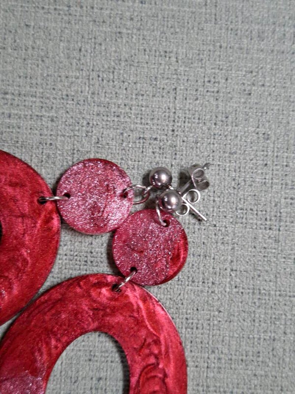 Deze oorbellen hebben een leuke speelse vorm. ze bestaan uit 2 delen die aan elkaar verbonden zijn met een ringetje. De oorbellen bestaan uit 2 warme tinten roze.